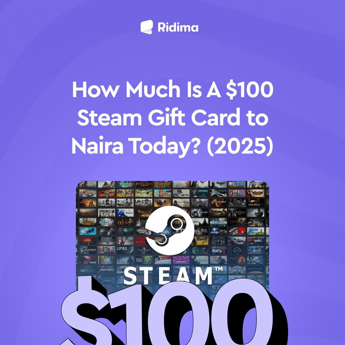 A $100 Steam gift card remains one of the most valuable digital assets in Nigeria today, with resale rates reaching up to ₦115,000 depending on the type and region. However, to get the most out of your gift card, where you trade matters just as much as the rate itself. Ridima offers competitive prices, quick payouts, and a secure platform that has earned the trust of gift card users across Nigeria. Ridima makes it easy to turn that value into cash. Use the Ridima rate calculator to know your rate and enjoy hassle-free transactions with responsive customer support.